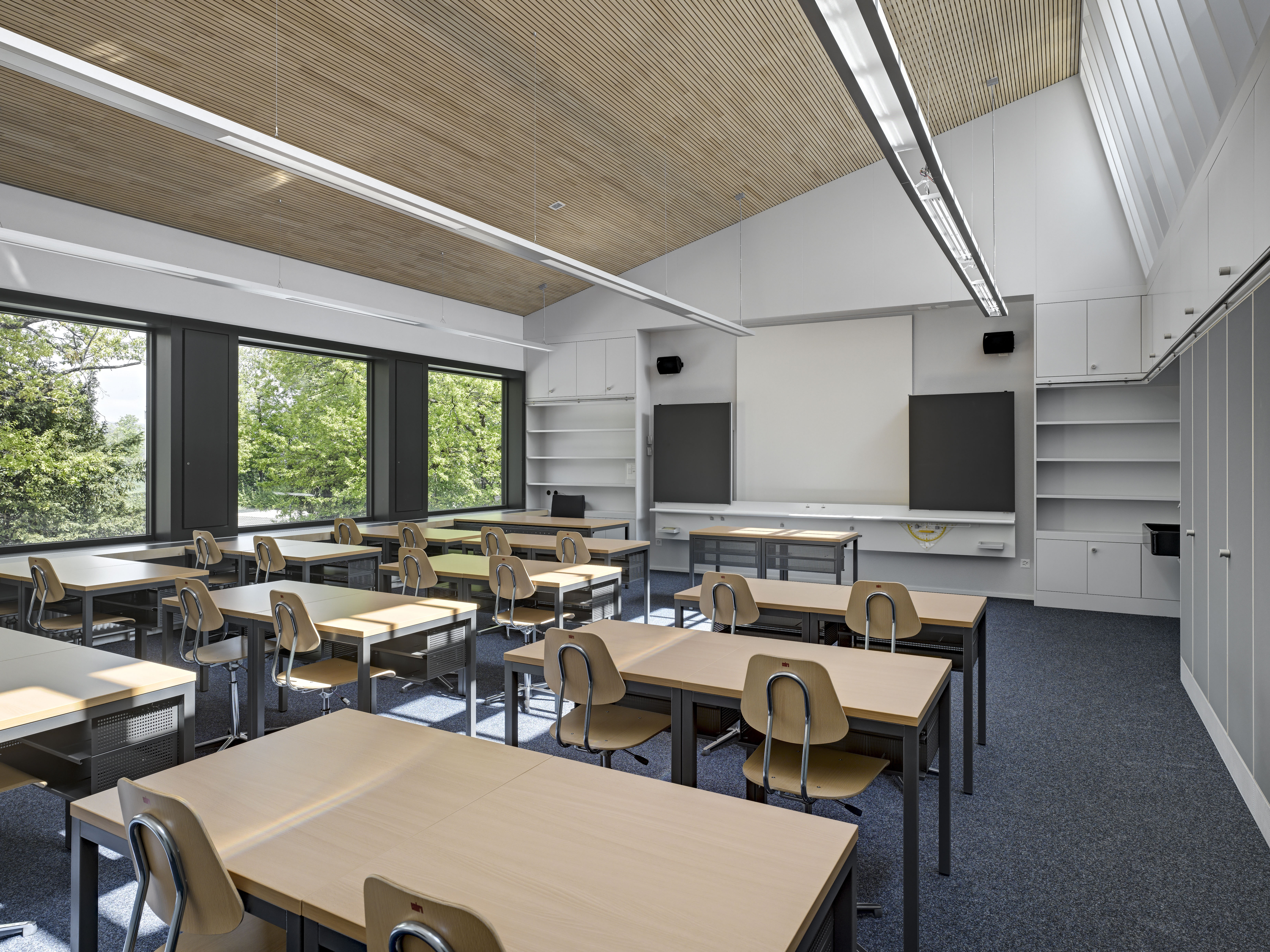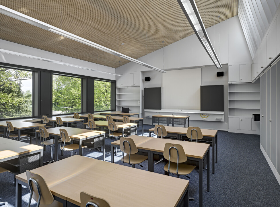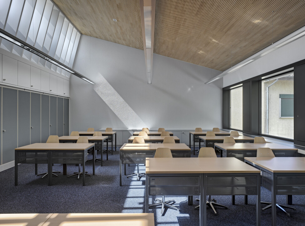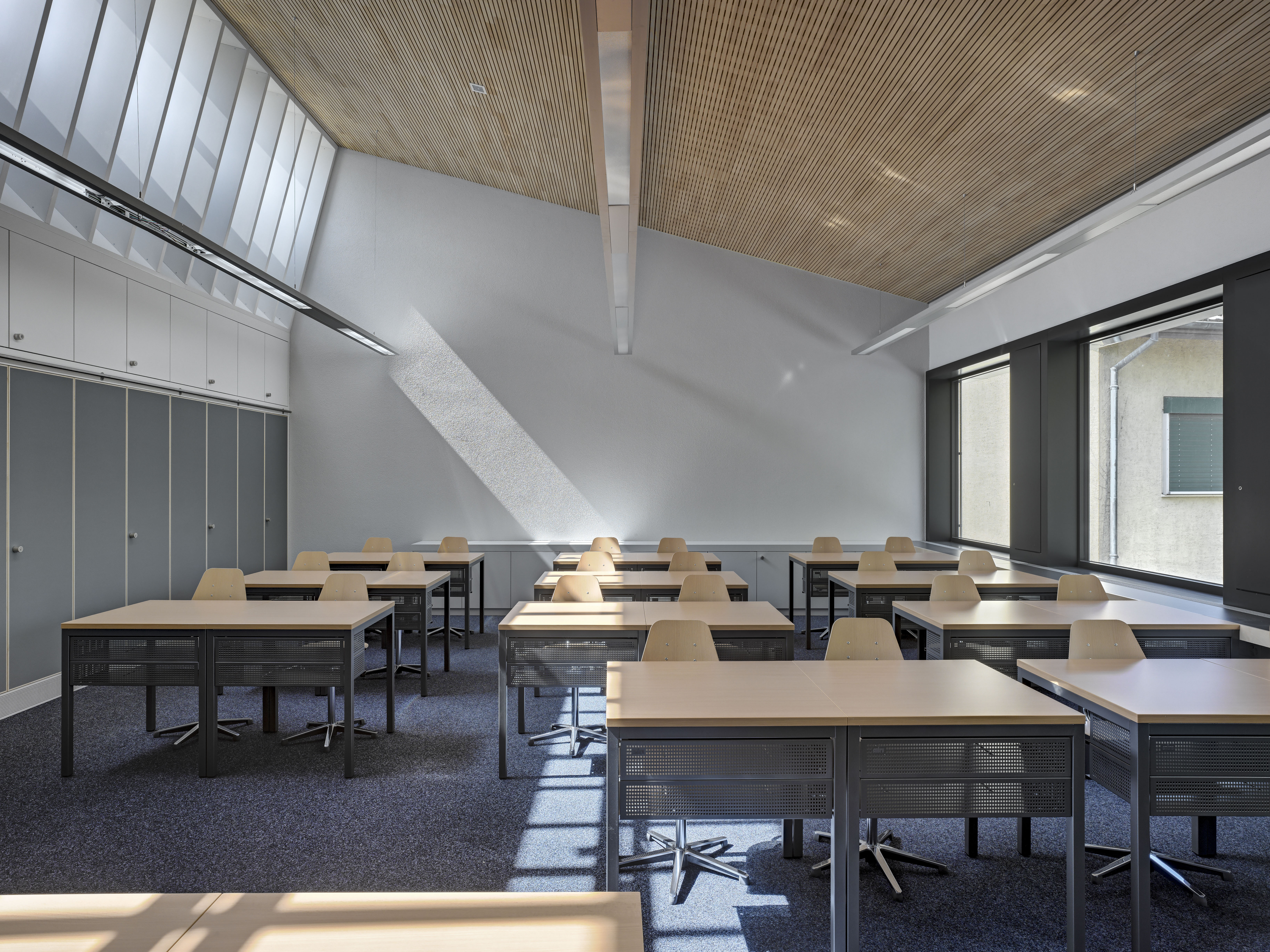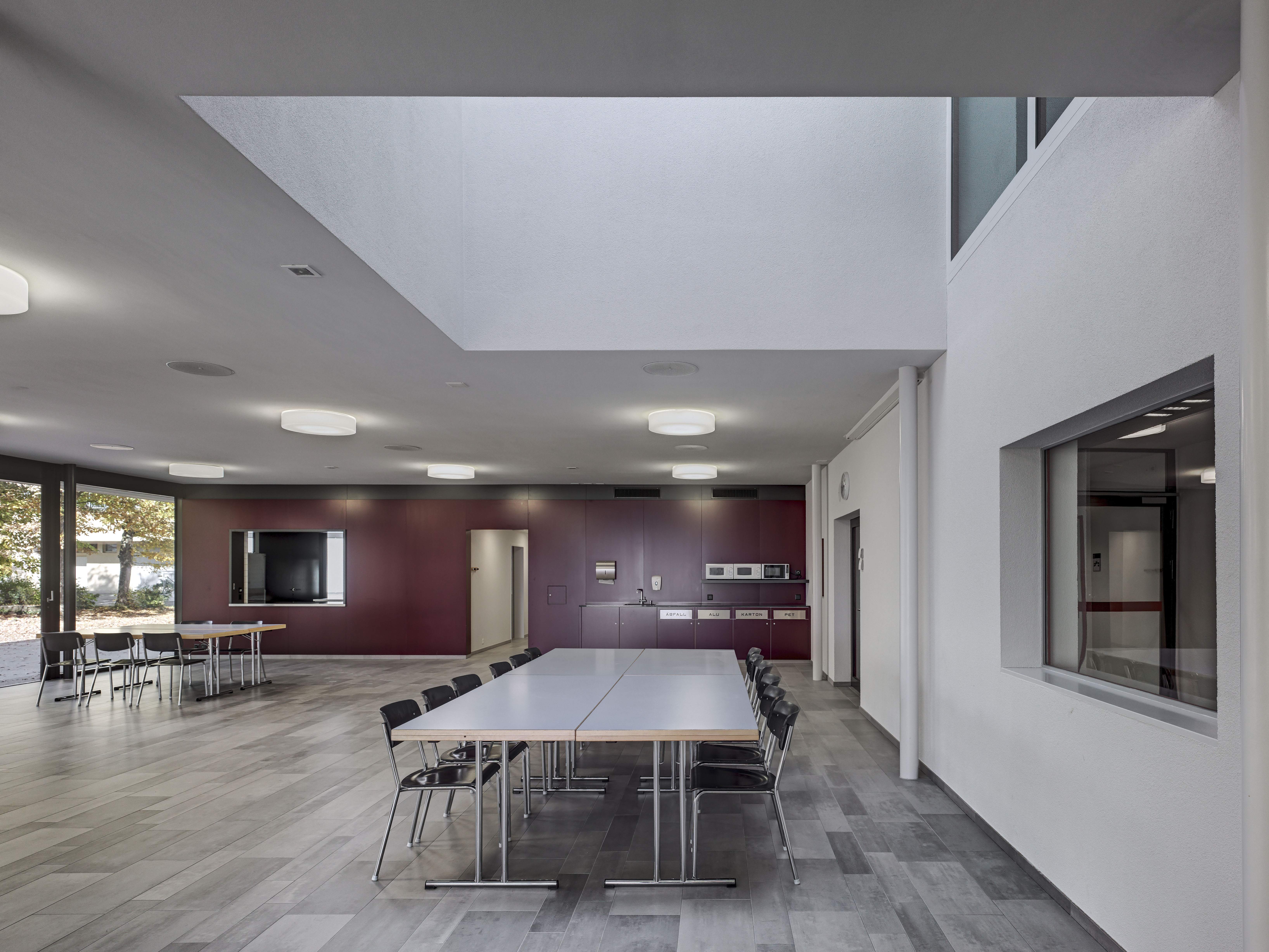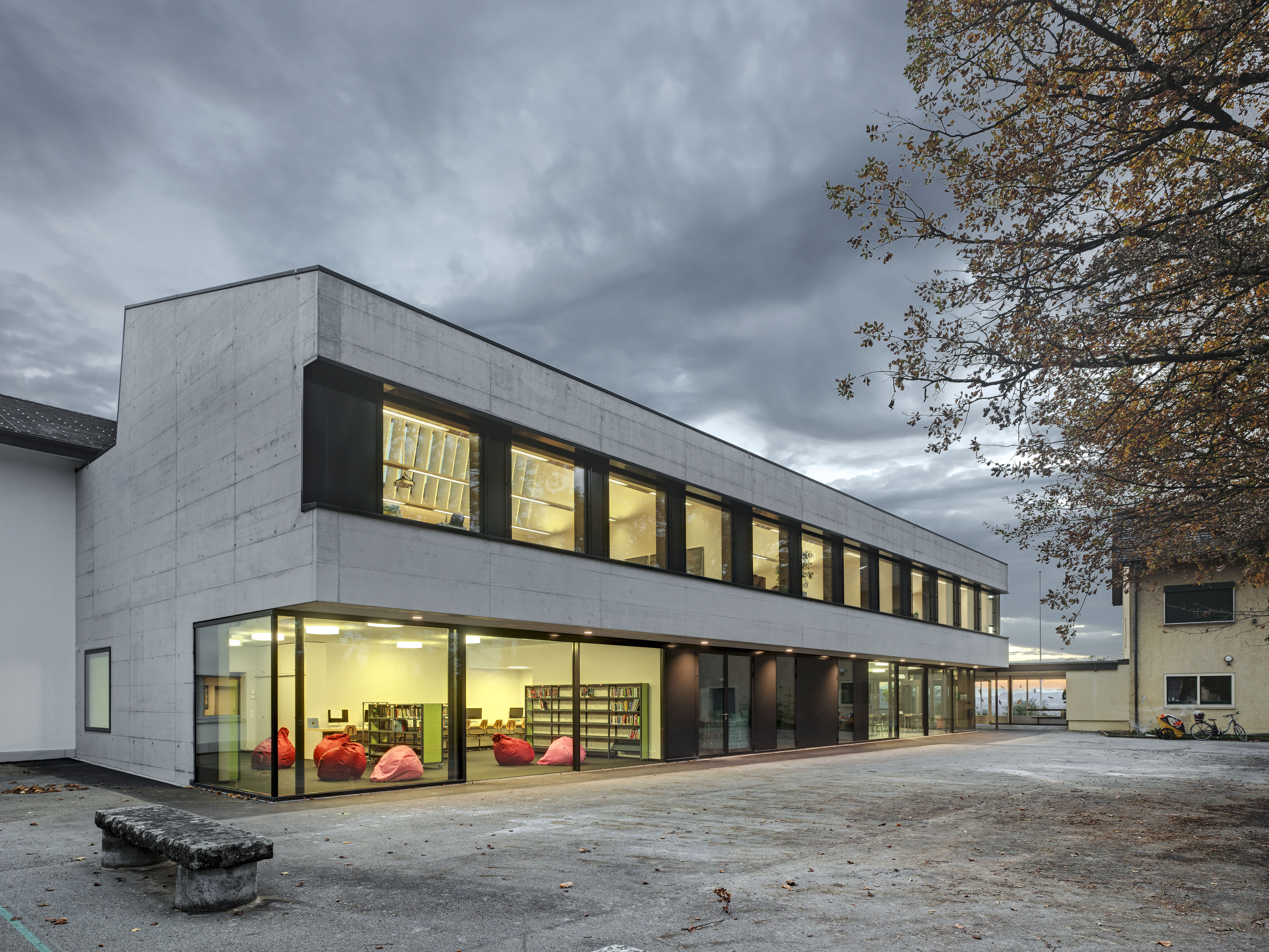 Mit dem geplanten Erweiterungsbau in MINERGIE-P Bauweise wird die Schule mit 3 Klassenzimmern, einem Aufenthaltsraum mit Officeküche und einer ansprechenden Bibliothek erweitert. Im bestehenden Westtrakt werden umfassende innere Umbauten vorgenommen, um die nicht mehr den Schul- baurichtlinien entsprechenden Klassenzimmer zu vergrössern und fehlende Gruppenräume zu schaffen. Der gesamte Westtrakt wird einer umfassenden energetischen Sanierung unterzogen. Die bestehenden Haustechnikinstallationen aus dem Erstellungsjahr werden saniert, zusätzlich wird das Gebäude mit einer Komfortlüftungsanlage mit Wärmerückgewinnung ausgestattet.